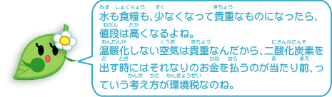 私の国では、環境にいいものほど税金が安くなる仕組みにする改革のひとつとして、環境税がかかるようになったの。集まったお金は、二酸化炭素を出さない新しいエネルギーの活用などにも使われているのよ。