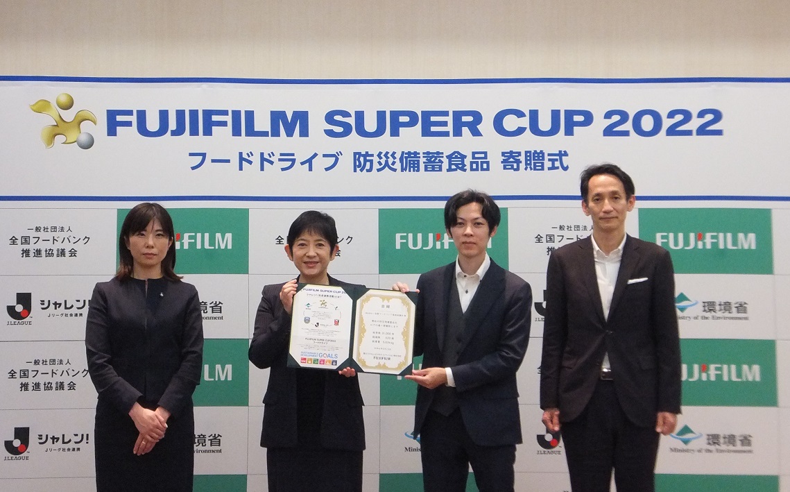 「FUJIFILM SUPER CUP 2022 フードドライブ 防災備蓄食品寄贈式」に環境省が参加しました