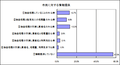 次いで「引渡し業者名のみを公表している」が13.3%、「独自処理していることのみを公表」が12.7%となり、「独自処理の利用先まで公表」しているのはわずか4.6%であった。