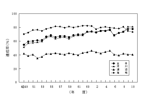 湖沼は閉鎖性の水域であり、汚濁物質が蓄積しやすいため、河川や海域に比べて環境基準の達成率が低い。また、富栄養化に伴い、各種の利水障害が生じている。このような湖沼の水質汚濁の原因は、湖沼の集水域で営まれる諸産業の事業活動から、人々の日常生活に至るまで多岐にわたっている。湖沼水質保全のためには、従来からの水質汚濁防止法による規制だけでは十分でないこと等にかんがみ、昭和59年に湖沼水質保全特別措置法が制定され、昭和60年3月から施行されている。[参考添付]