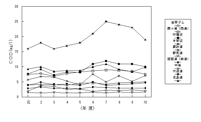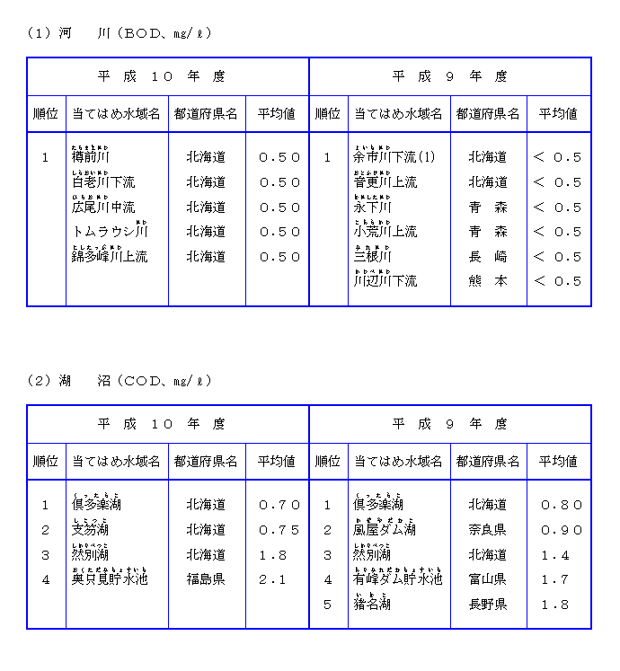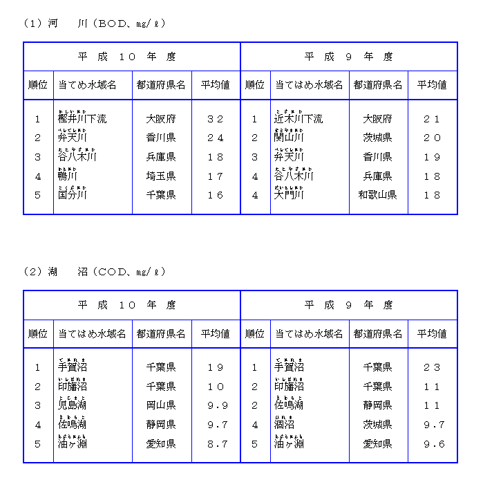 * BOD/CODの年度平均値が大きい水域から順位を付した。