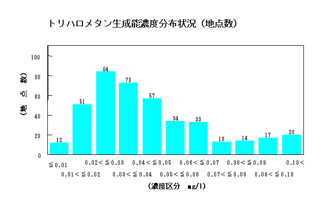 トリハロメタンとは、メタン(CH4)の4つの水素原子のうち3個が塩素や臭素などのハロゲン原子で置き換わった化合物で発がん性物質である。具体的には、クロロホルム(CHCl3)、ブロモジクロロメタン(CHBrCl2)、ブロモホルム(CHBr3)、ジブロモクロロメタン(CHBr2Cl)の4物質が代表的な物質である。これらのトリハロメタンは、水道原水中に含まれるフミン質(有機物が微生物等によって分解された結果生じる難分解性の物質)等の有機物質が、浄水処理の過程で注入される塩素と反応して生じる。