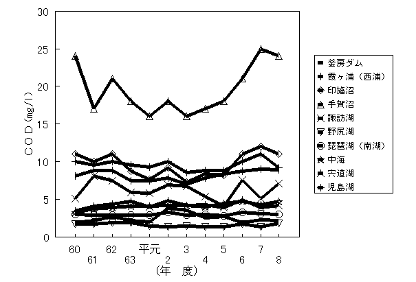 - これまでに、琵琶湖、霞ヶ浦等10湖沼が指定湖沼として指定され、湖沼水質保全計画に基づく各種施策が実施されている。湖沼水質保全計画の内容は、[1]水質の保全に関する方針、[2]下水道の整備等水質の保全に資する事業、[3]工場排水、生活排水等各種汚濁源に対する規制その他の措置、[4]その他水質保全のために必要な措置等であるが、平成8年度に策定された第3期湖沼水質保全計画(対象5湖沼)では、特に、以下のような特徴があげられる。
