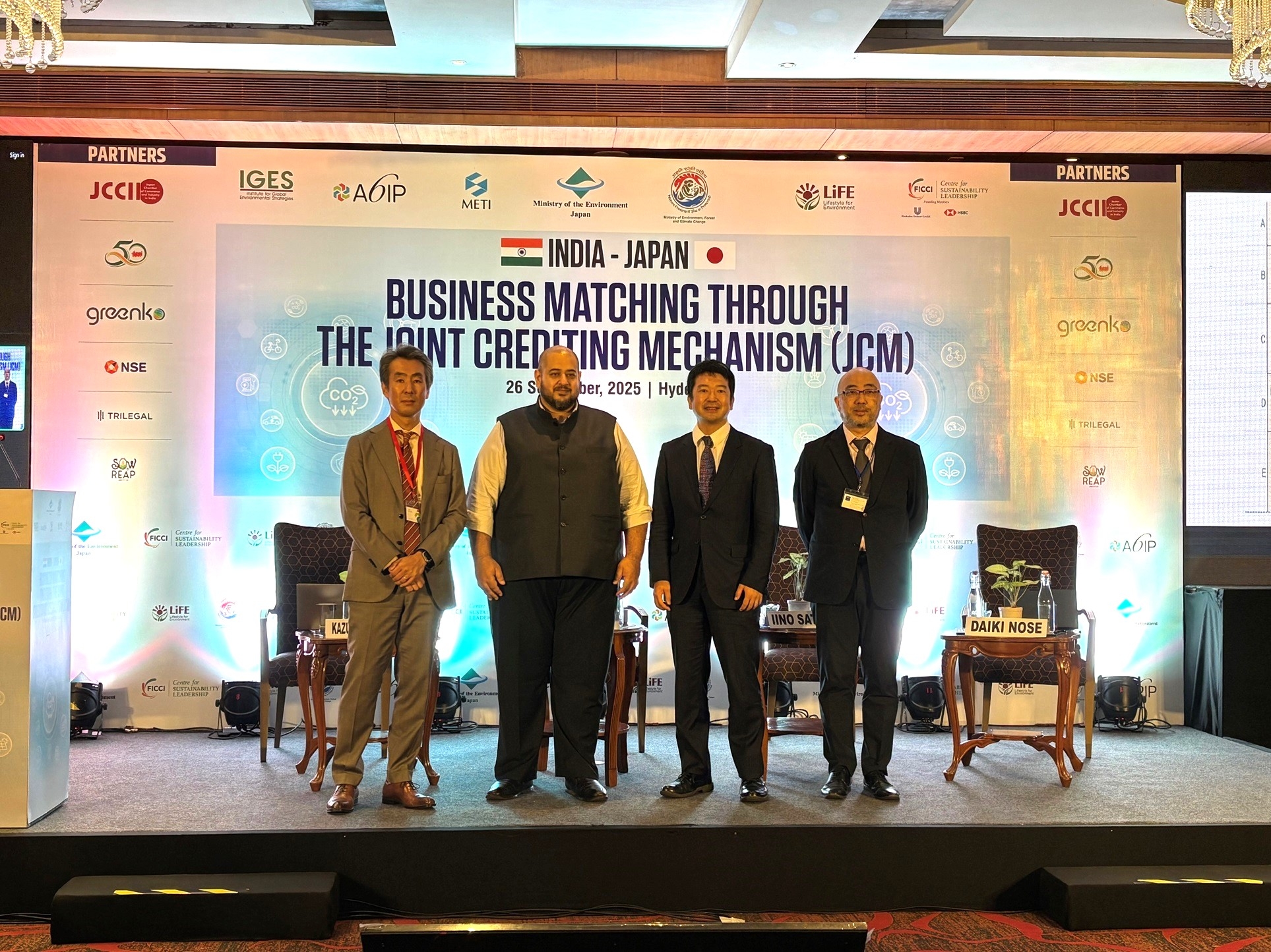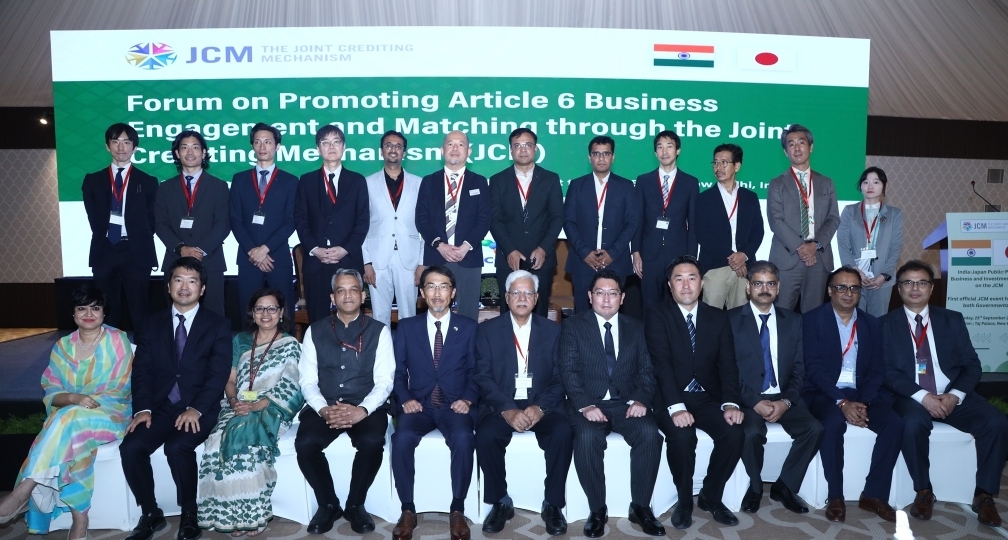 1. 2025年9月23日(火)、日本国環境省は、インド共和国 環境・森林・気候変動省(MoEFCC)との共催で、インド・デリーにて、「JCMビジネス参画フォーラム」を開催し、同年9月26日(金)にインド・ハイデラバードにてビジネスマッチングイベントを開催しました。両フォーラムには、官民・研究機関・NGOなど多様な関係者、計約900名程度が参加しました。これは、日印間で初めて公式に開催されたJCMイベントであり、JCMを通じた両国の脱炭素連携の実質的な始動を示す重要な機会となりました。
