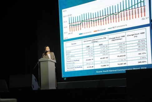 ウランバートル市において、廃棄物の大量かつ不適正な埋立処分により環境汚染が生じている現状を改善するため、廃棄物発電施設整備が計画されていることが紹介されました。エックス都市研究所の協力で実施した廃棄物組成調査により、発電のポテンシャルが確認されたことが示され、石炭から再生可能エネルギーへの移行と埋立処分場からのメタン排出削減という2種類の温室効果ガス削減の取組への期待が述べられました。