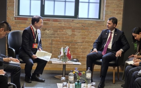 本会合の機会を利用して、青山環境副大臣は、COP31議長を務める予定のトルコ共和国のムラト・クルム環境・都市・気候変動大臣を始め、各国の閣僚級や国際機関の長等と個別に会談を実施しました。