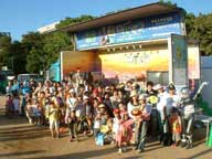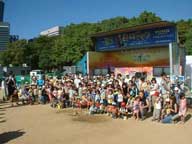 当日は夏休み中の日曜日ということもあり、3Rキャンペーンの会場となった「大阪キング」(毎日放送主催)大阪城公園太陽の広場会場には、20万人を超える幅広い年齢層の来場者がありました。このため、3Rのキャンペーンは、当初2回のステージ予定を急遽3回に増やして実施しました。メインゲート前の会場の3Rキャンペーンカー前には、毎回、開演前から家族連れを中心に多くの方々が集まり、○×クイズなど3Rキャンペーンを実施しました。個別写真の撮影では、あまりに多くの希望者がいらしたため、事前に整理券を配付するほどの大盛況でした。