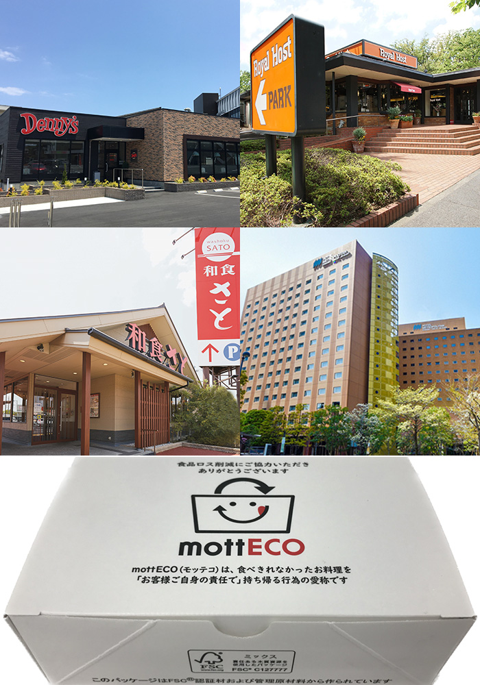 外食及びホテル事業者の4社が協働し、 mottECO導入を推進する取組。中小・個人飲食店の参加の一助となるべく、告知ツールやFSC認証紙製の専用持ち帰り容器等の共同制作・購入の検討、教育機関や自治体等への啓発活動等にも取り組む。