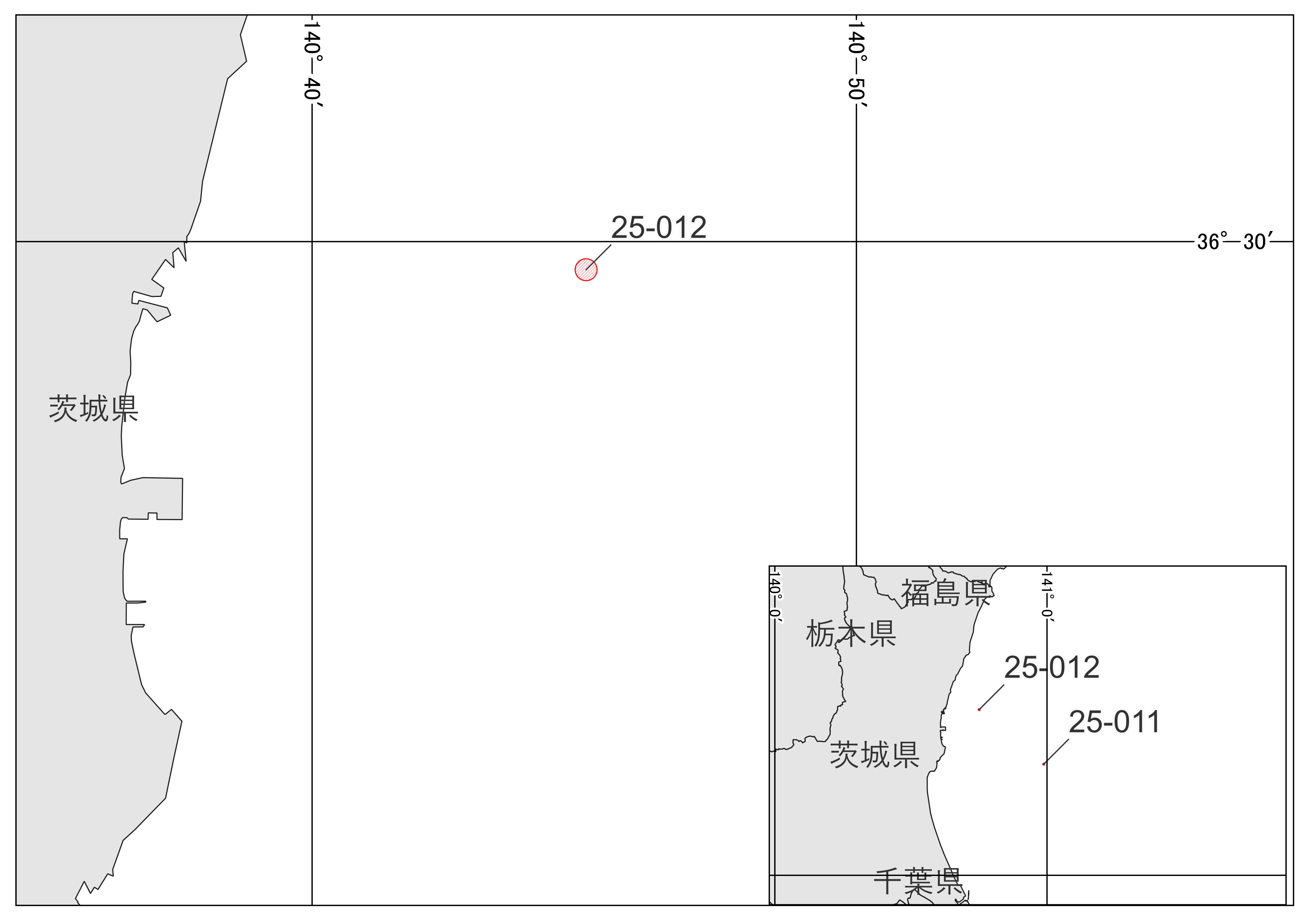 212,535m3 | 排出海域1: [1-1]北緯35°53'03"、東経140°52'56" [1-2]北緯35°53'03"、東経140°53'36" [1-3]北緯35°52'31"、東経140°52'55" [1-4]北緯35°52'30"、東経140°53'35" 以上の4点に囲まれた海域 排出海域2: [2-1]北緯35°54'02"、東経141°16'36" [2-2]北緯35°54'02"、東経141°17'33" [2-3]北緯35°53'16"、東経141°16'35" [2-4]北緯35°53'16"、東経141°17'32" 以上の4点に囲まれた海域 |